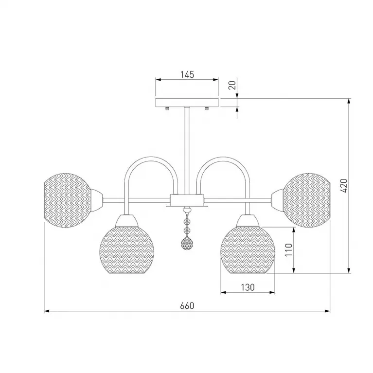 Преобладающий цвет люстры: Янтарный, плафонов: Янтарный, арматуры: Золото; материал изготовления арматуры: Металл, размеры, мм: длина 650 / ширина 650 / высота 420 Общая мощность – 240 Ватт, а максимальная площадь освещения до 16 м2. Основной тип ламп, предусмотренный производителем: Накаливания с цоколем E27. В зависимости от предпочтений можно использовать лампы теплового, холодного или нейтрального света, за исключением люстр с типом цоколя LED.