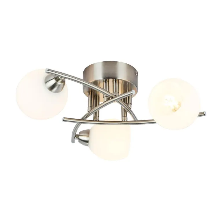 Преобладающий цвет плафонов: Белый, арматуры: Матовый, никель; материал изготовления арматуры: Металл, размеры, мм: / высота 150 / диаметр 405. Общая мощность – 120 Ватт, а максимальная площадь освещения до 6 м2. Основной тип ламп, предусмотренный производителем: Накаливания с цоколем E14. В зависимости от предпочтений можно использовать лампы теплового, холодного или нейтрального света, за исключением люстр с типом цоколя LED.