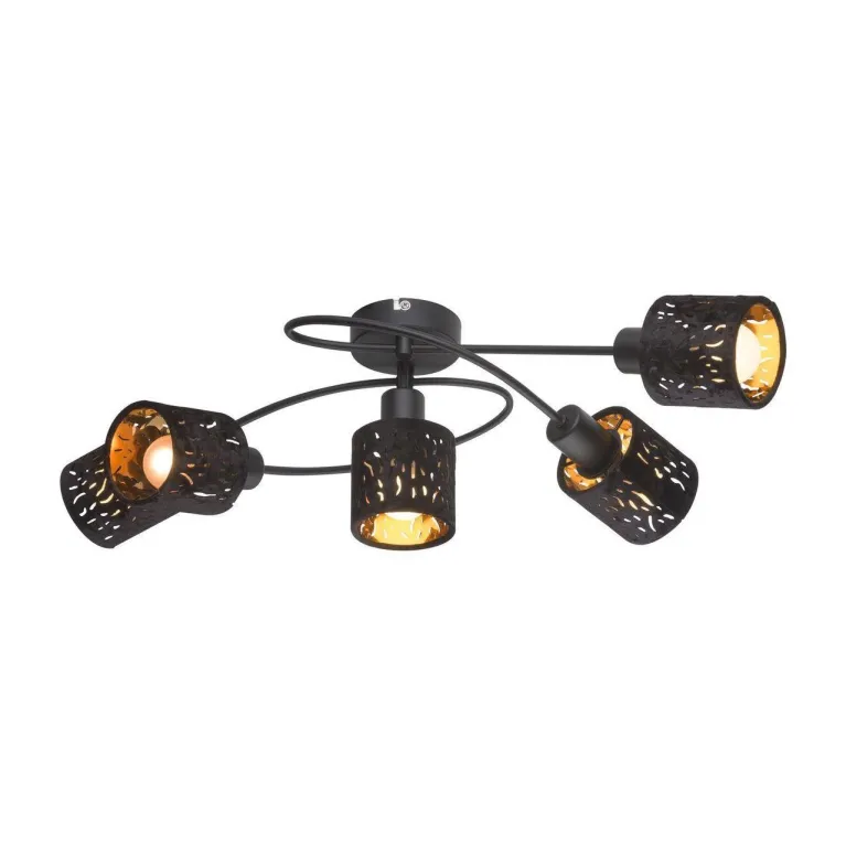 Люстра оснащена пятью источниками света с цоколем E14, что позволяет использовать различные типы ламп, включая энергосберегающие и светодиодные. Суммарная мощность ламп — 300 Вт, что обеспечивает яркое и равномерное освещение пространства площадью до 18 кв.м. Основание выполнено из прочного металла с черным матовым покрытием, которое придает изделию современный и стильный вид.