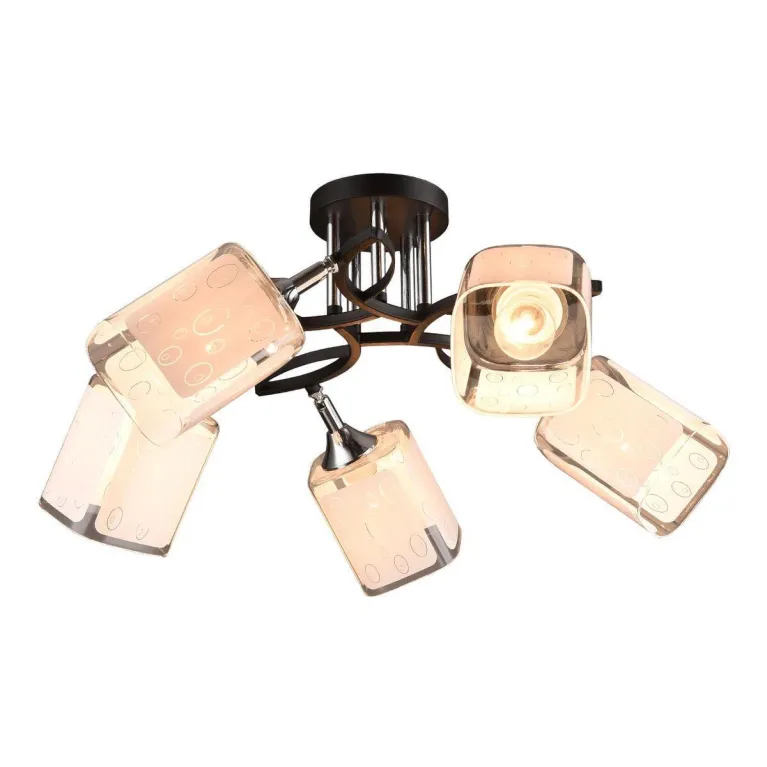 Преобладающий цвет люстры: Белый, плафонов: Белый, арматуры: Черный; материал изготовления арматуры: Металл, размеры, мм: / высота 240 / диаметр 600. Общая мощность – 300 Ватт. Основной тип ламп, предусмотренный производителем: Накаливания с цоколем E27. В зависимости от предпочтений можно использовать лампы теплового, холодного или нейтрального света, за исключением люстр с типом цоколя LED.