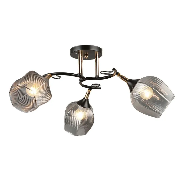 Преобладающий цвет люстры: Дымчатый, плафонов: Дымчатый, арматуры: Венге; материал изготовления арматуры: Металл, размеры, мм: / высота 240 / диаметр 600. Общая мощность – 180 Ватт. Основной тип ламп, предусмотренный производителем: Накаливания с цоколем E27. В зависимости от предпочтений можно использовать лампы теплового, холодного или нейтрального света, за исключением люстр с типом цоколя LED.