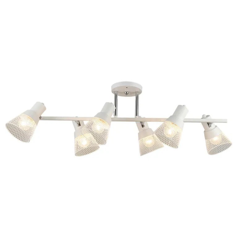 Преобладающий цвет люстры: Белый, плафонов: Белый, арматуры: Белый; материал изготовления арматуры: Металл, размеры, мм: длина 880 / ширина 255 / высота 230 Общая мощность – 240 Ватт. Основной тип ламп, предусмотренный производителем: Накаливания с цоколем E14. В зависимости от предпочтений можно использовать лампы теплового, холодного или нейтрального света, за исключением люстр с типом цоколя LED.