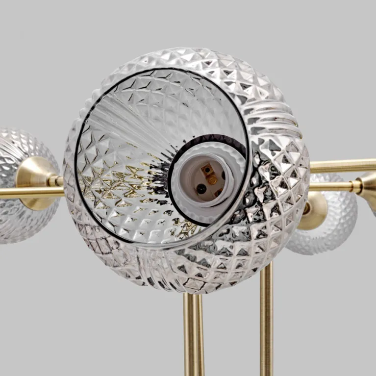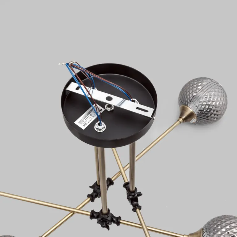 Люстра изготовлена из высококачественных материалов, которые обеспечивают её долговечность и надёжность. Её легко подключить и установить на любой тип потолка: натяжной, подвесной или бетонный. Светильник хорошо смотрится с декоративными лампами разных форм и размеров.