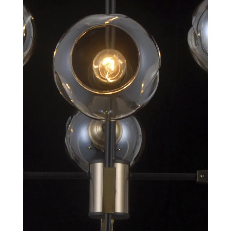 Преобладающий цвет люстры: Шампань, плафонов: Шампань, арматуры: Бронза; материал изготовления арматуры: Металл, размеры, мм: / высота 780 / диаметр 760. Общая мощность – 480 Ватт, а максимальная площадь освещения до 24 м2. Основной тип ламп, предусмотренный производителем: Накаливания с цоколем E27. В зависимости от предпочтений можно использовать лампы теплового, холодного или нейтрального света, за исключением люстр с типом цоколя LED.