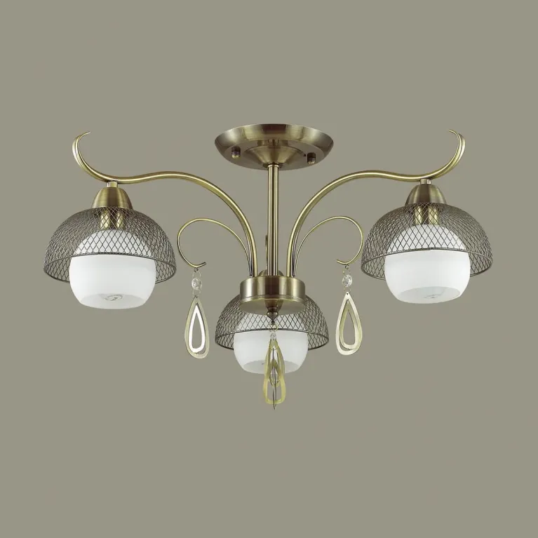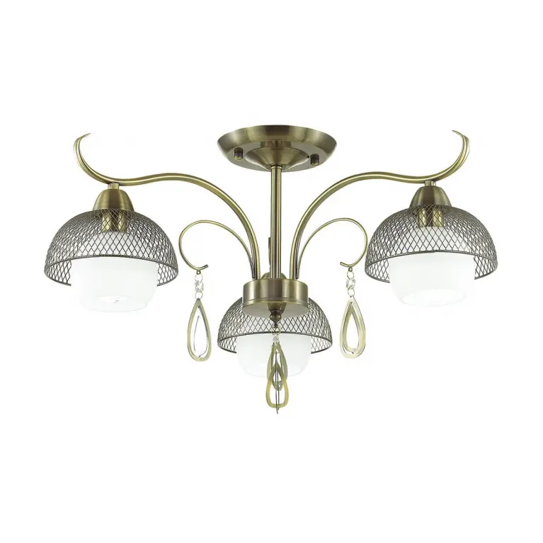 Преобладающий цвет люстры: Бронза, плафонов: Белый, арматуры: Бронза; материал изготовления арматуры: Металл, размеры, мм: / высота 350 / диаметр 605. Общая мощность – 180 Ватт. Основной тип ламп, предусмотренный производителем: Накаливания с цоколем E14. В зависимости от предпочтений можно использовать лампы теплового, холодного или нейтрального света, за исключением люстр с типом цоколя LED.