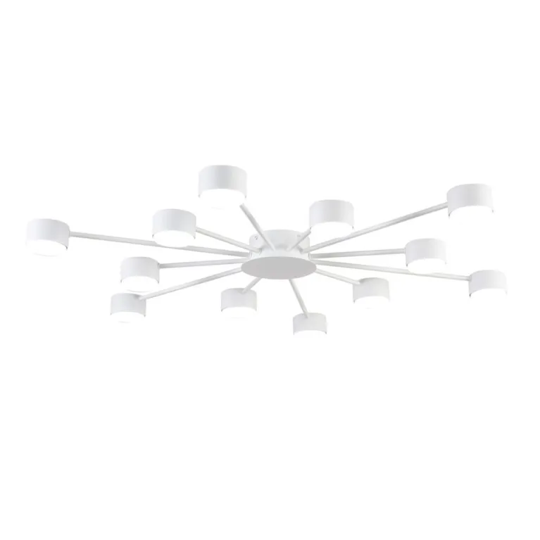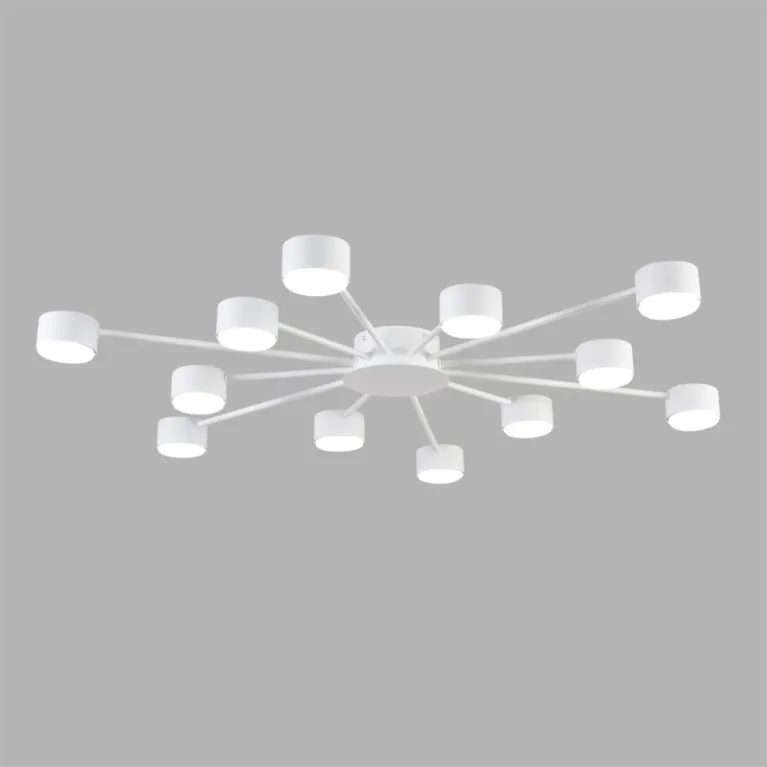 Преобладающий цвет плафонов: Белый, арматуры: Белый; материал изготовления арматуры: Металл, размеры, мм: / высота 73 / диаметр 1000. Общая мощность – 84 Ватт, а максимальная площадь освещения до 16 м2. Основной тип ламп, предусмотренный производителем: Светодиодная с цоколем GX53. В зависимости от предпочтений можно использовать лампы теплового, холодного или нейтрального света, за исключением люстр с типом цоколя LED.