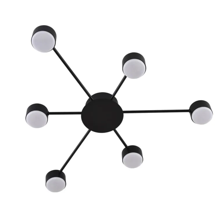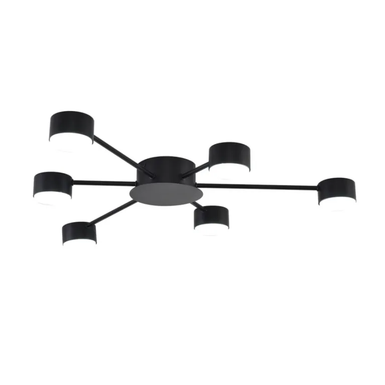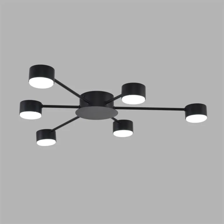 Преобладающий цвет плафонов: Черный, арматуры: Черный; материал изготовления арматуры: Металл, размеры, мм: / высота 73 / диаметр 780. Общая мощность – 42 Ватт, а максимальная площадь освещения до 8 м2. Основной тип ламп, предусмотренный производителем: Светодиодная с цоколем GX53. В зависимости от предпочтений можно использовать лампы теплового, холодного или нейтрального света, за исключением люстр с типом цоколя LED.