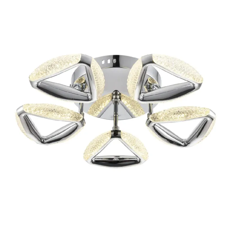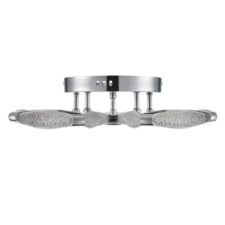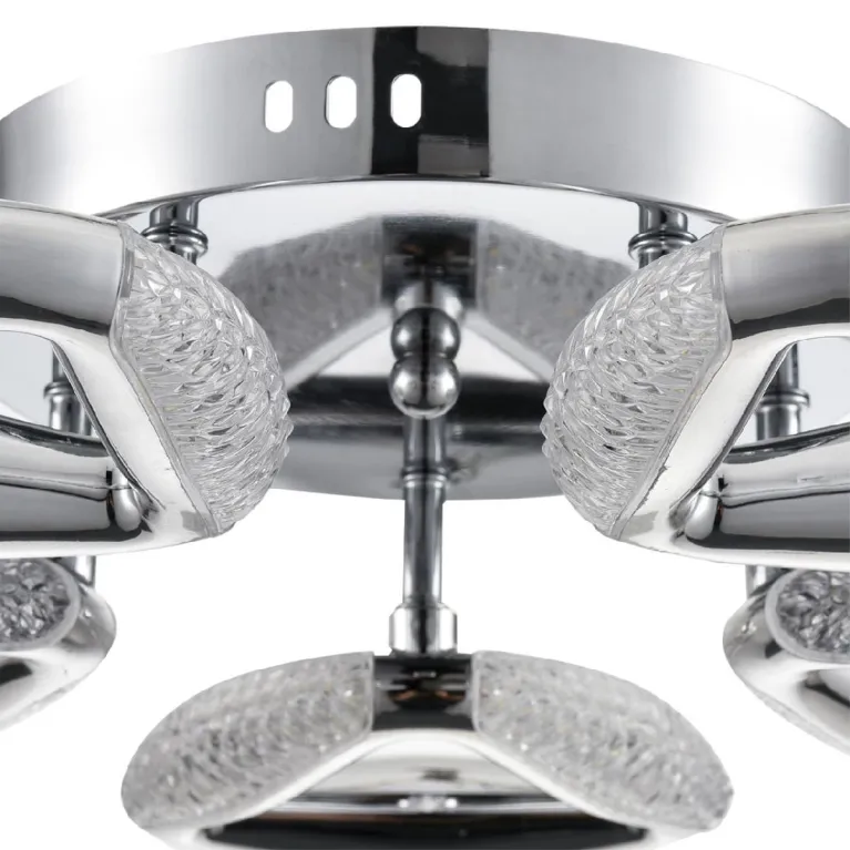 Преобладающий цвет плафонов: Прозрачный, арматуры: Хром; материал изготовления арматуры: Металл, размеры, мм: / высота 105 / диаметр 440. Общая мощность – 65 Ватт, а максимальная площадь освещения до 13 м2. Основной тип ламп, предусмотренный производителем: Светодиодная с цоколем LED. В зависимости от предпочтений можно использовать лампы теплового, холодного или нейтрального света, за исключением люстр с типом цоколя LED.