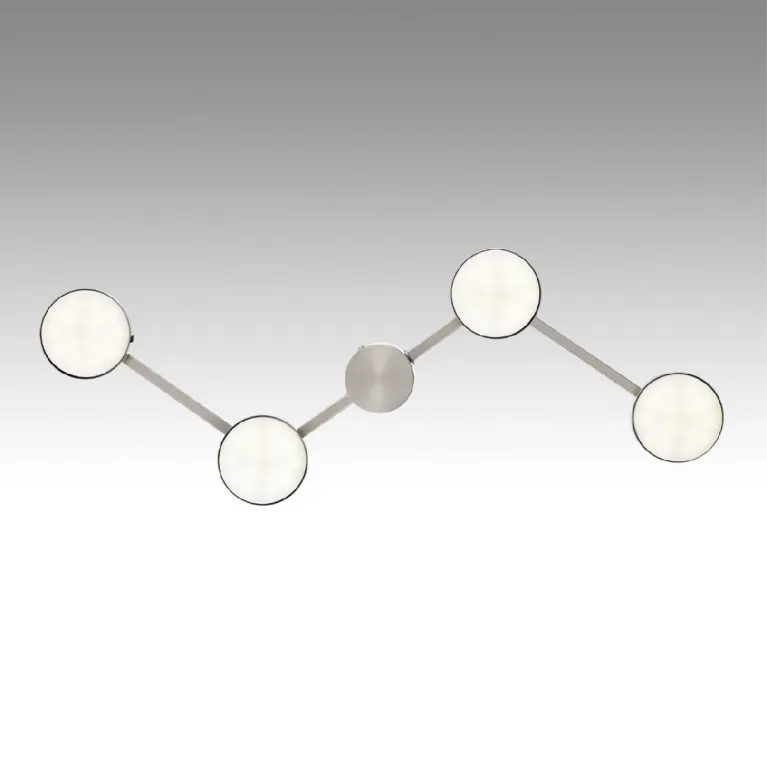 Преобладающий цвет плафонов: Никель, арматуры: Никель; материал изготовления арматуры: Металл, размеры, мм: длина 580 / ширина 200 / высота 80 Общая мощность – 28 Ватт, а максимальная площадь освещения до 5 м2. Основной тип ламп, предусмотренный производителем: Светодиодная с цоколем GX53. В зависимости от предпочтений можно использовать лампы теплового, холодного или нейтрального света, за исключением люстр с типом цоколя LED.