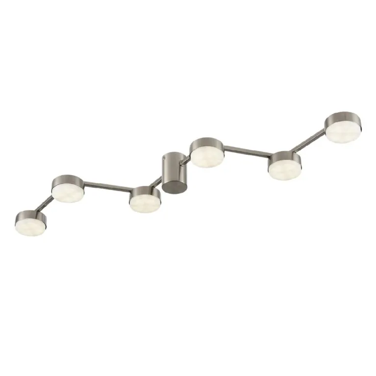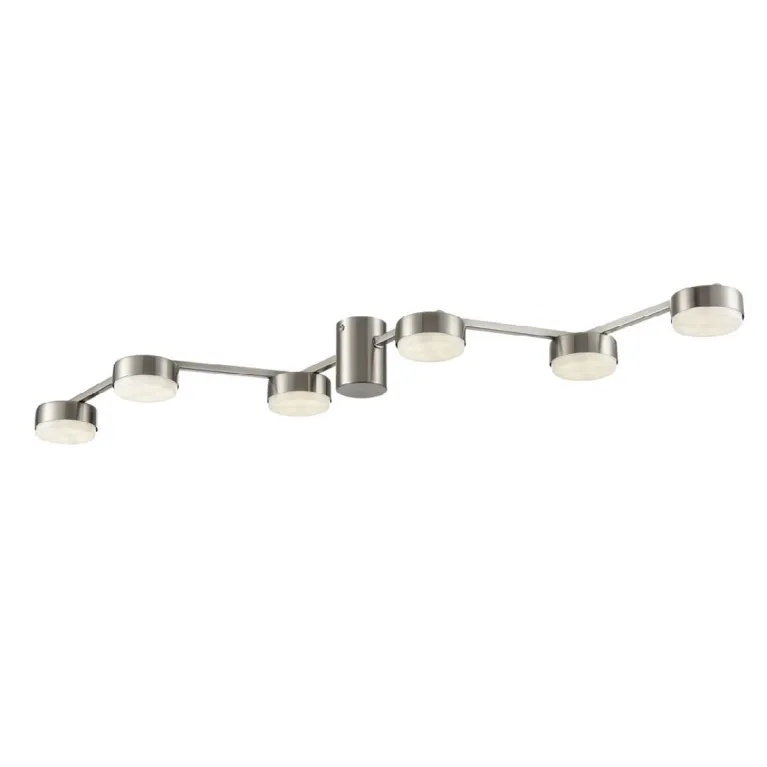 Преобладающий цвет плафонов: Никель, арматуры: Никель; материал изготовления арматуры: Металл, размеры, мм: длина 920 / ширина 200 / высота 80 Общая мощность – 42 Ватт, а максимальная площадь освещения до 8 м2. Основной тип ламп, предусмотренный производителем: Светодиодная с цоколем GX53. В зависимости от предпочтений можно использовать лампы теплового, холодного или нейтрального света, за исключением люстр с типом цоколя LED.