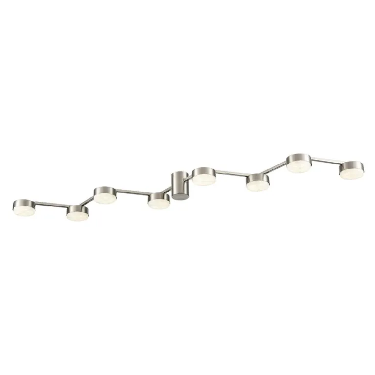 Преобладающий цвет плафонов: Никель, арматуры: Никель; материал изготовления арматуры: Металл, размеры, мм: длина 1210 / ширина 200 / высота 80 Общая мощность – 56 Ватт, а максимальная площадь освещения до 11 м2. Основной тип ламп, предусмотренный производителем: Светодиодная с цоколем GX53. В зависимости от предпочтений можно использовать лампы теплового, холодного или нейтрального света, за исключением люстр с типом цоколя LED.