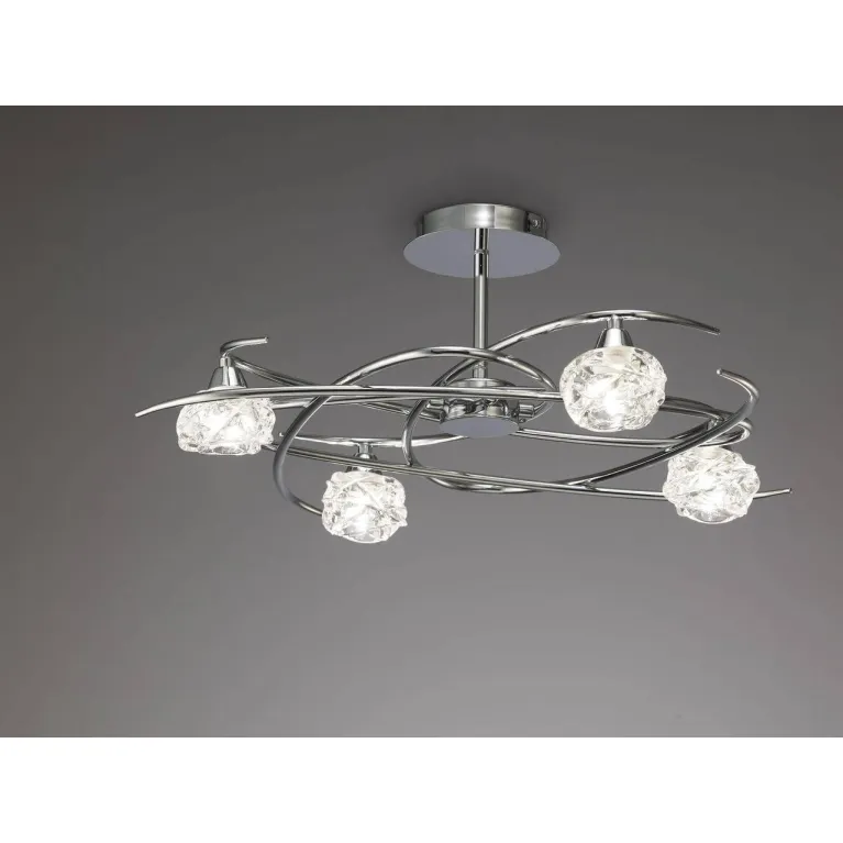 Преобладающий цвет люстры: Хром, плафонов: Прозрачный, арматуры: Хром; материал изготовления арматуры: Металл, размеры, мм: / высота 260 / диаметр 525. Общая мощность – 132 Ватт, а максимальная площадь освещения до 7,3 м2. Основной тип ламп, предусмотренный производителем: Галогеновая с цоколем G9. В зависимости от предпочтений можно использовать лампы теплового, холодного или нейтрального света, за исключением люстр с типом цоколя LED.