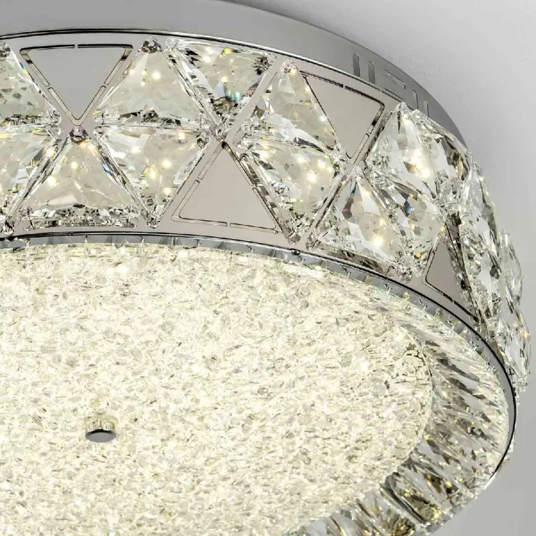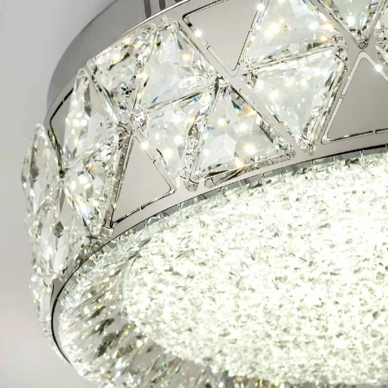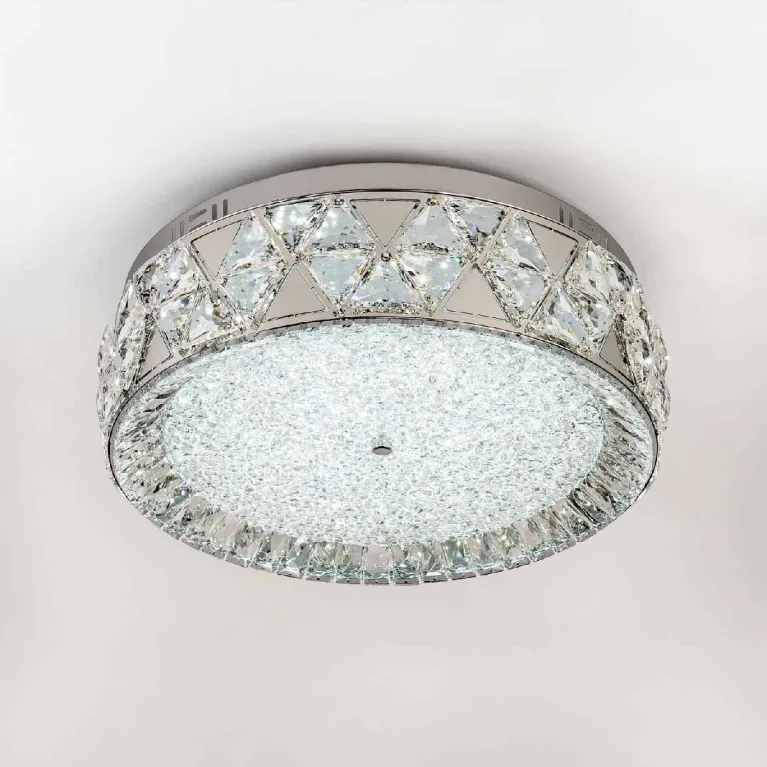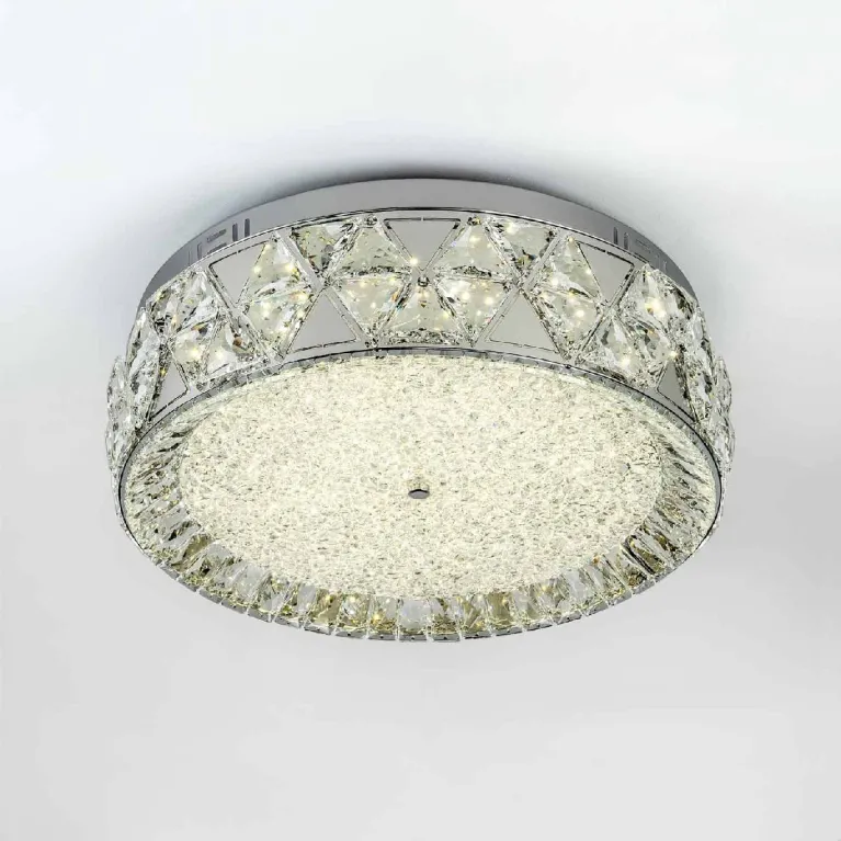 Преобладающий цвет плафонов: Прозрачный, арматуры: Хром; материал изготовления арматуры: Металл, размеры, мм: / высота 160 / диаметр 500. Общая мощность – 100 Ватт. Основной тип ламп, предусмотренный производителем: Светодиодная с цоколем LED. В зависимости от предпочтений можно использовать лампы теплового, холодного или нейтрального света, за исключением люстр с типом цоколя LED.