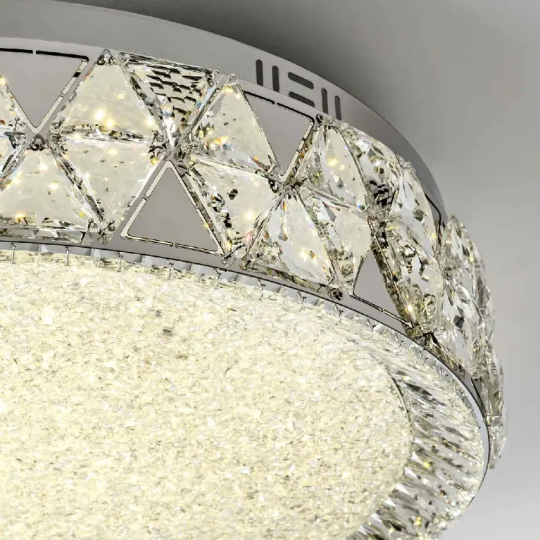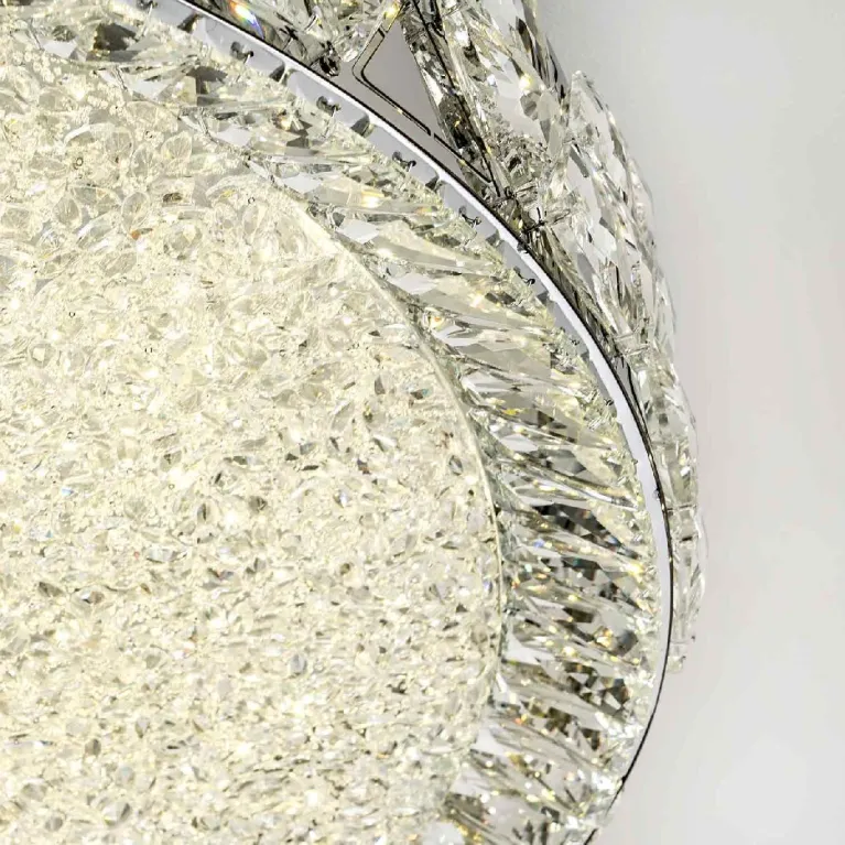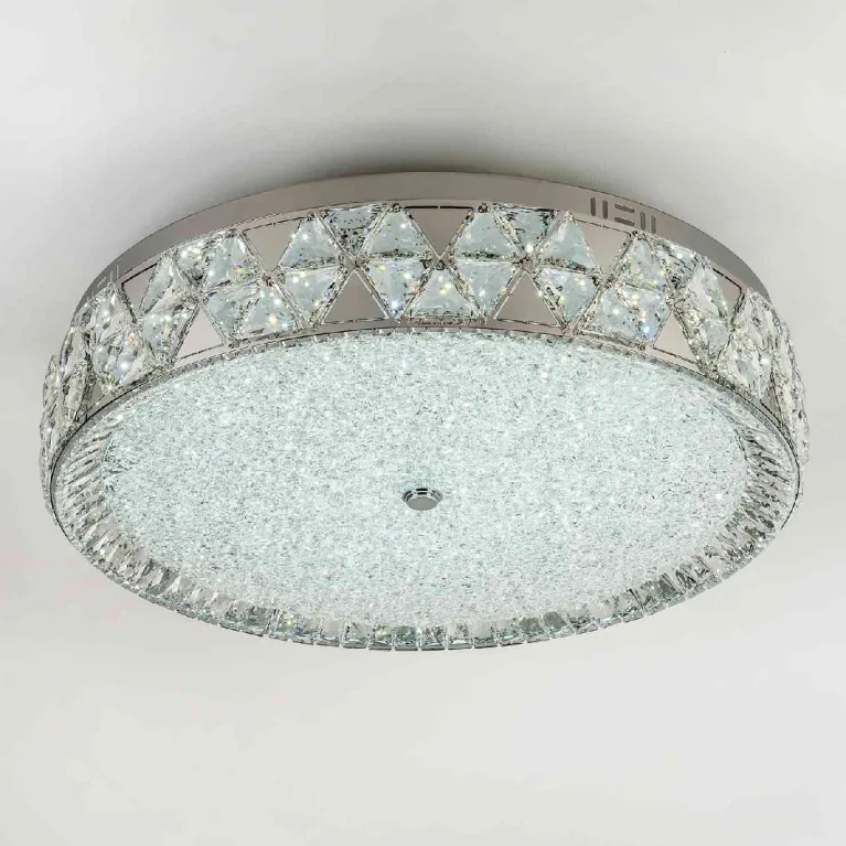 Преобладающий цвет плафонов: Прозрачный, арматуры: Хром; материал изготовления арматуры: Металл, размеры, мм: / высота 170 / диаметр 700. Общая мощность – 240 Ватт. Основной тип ламп, предусмотренный производителем: Светодиодная с цоколем LED. В зависимости от предпочтений можно использовать лампы теплового, холодного или нейтрального света, за исключением люстр с типом цоколя LED.