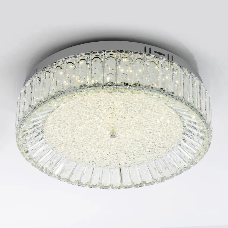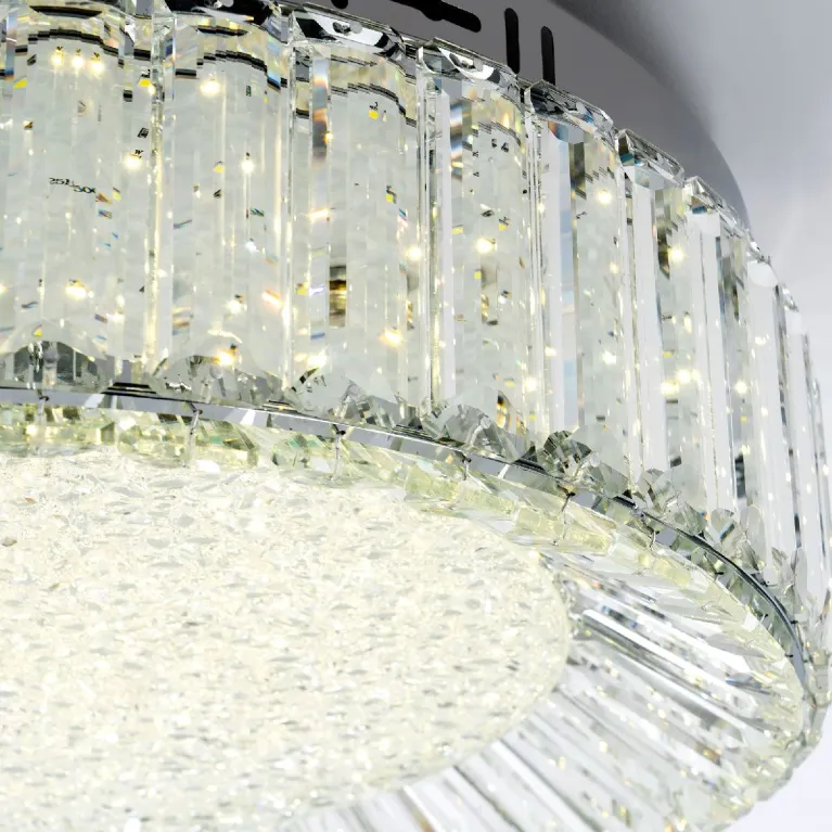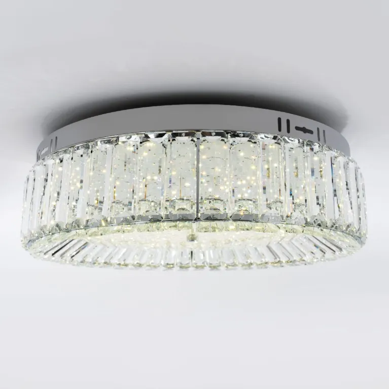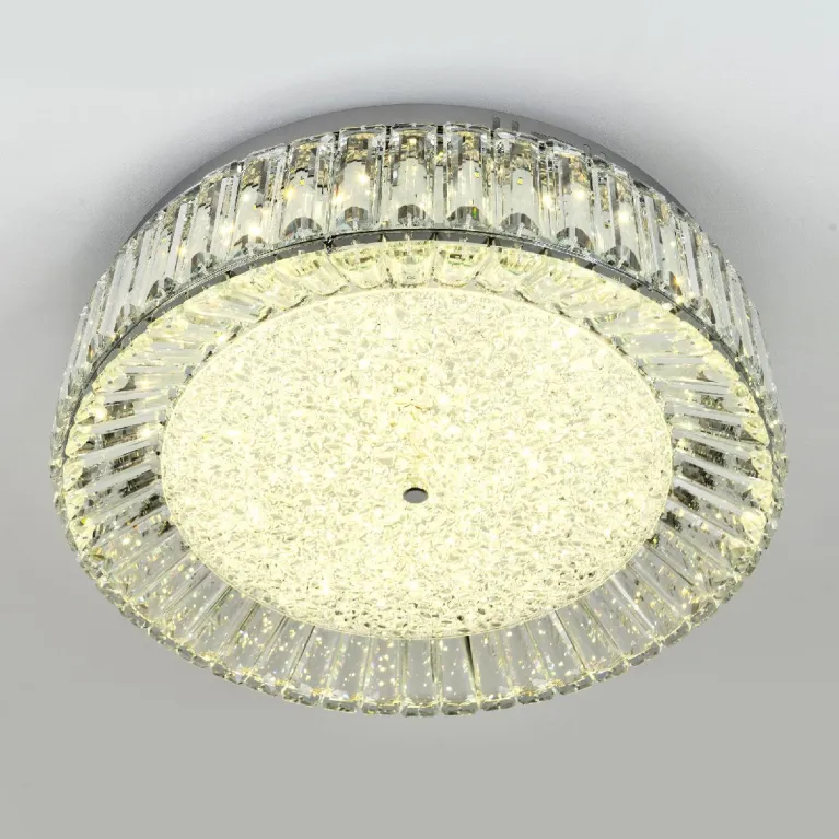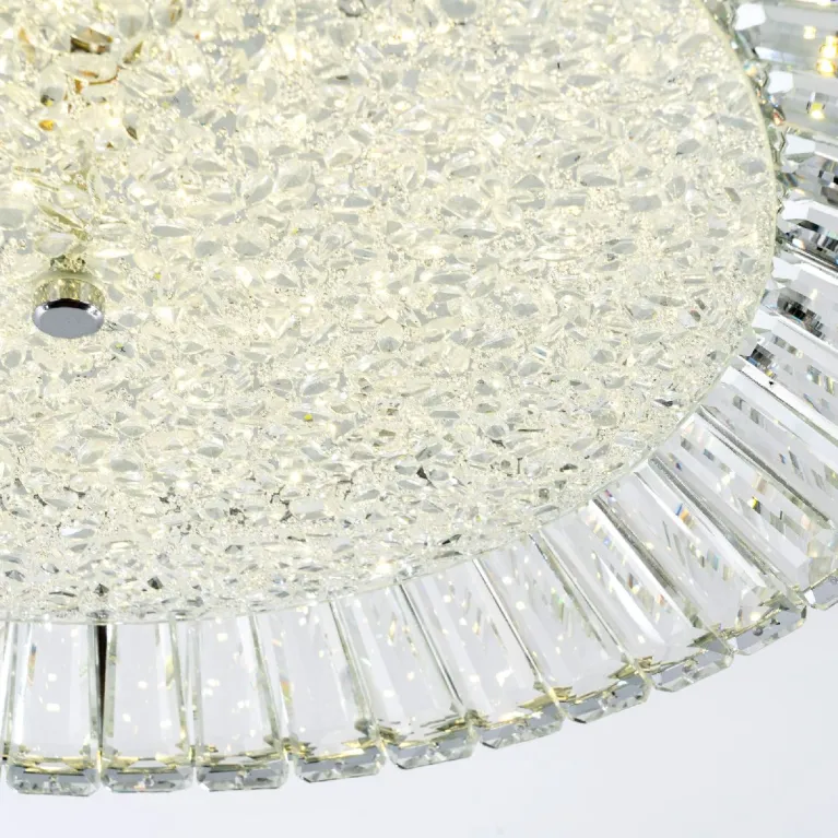 Преобладающий цвет плафонов: Прозрачный, арматуры: Хром; материал изготовления арматуры: Металл, размеры, мм: / высота 150 / диаметр 500. Общая мощность – 55 Ватт, а максимальная площадь освещения до 22 м2. Основной тип ламп, предусмотренный производителем: Светодиодная с цоколем LED. В зависимости от предпочтений можно использовать лампы теплового, холодного или нейтрального света, за исключением люстр с типом цоколя LED.