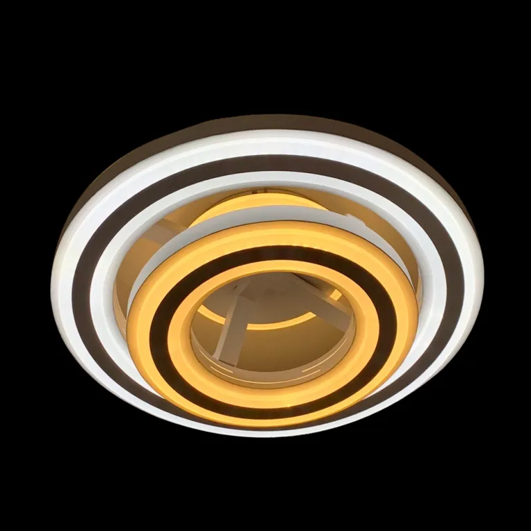 Благодаря своей конструкции и компактным размерам (высота 300 мм, диаметр 500 мм), люстра занимает мало места и легко интегрируется в пространство, делая его более светлым и современным. Удобный способ крепления обеспечивает надежную фиксацию на потолке и простоту в установке.
