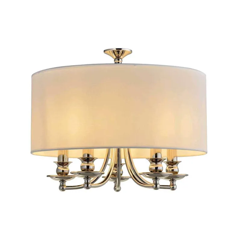 Преобладающий цвет люстры: Бежевый, плафонов: Бежевый, арматуры: Никель; материал изготовления арматуры: Металл, размеры, мм: / высота 400 / диаметр 500. Общая мощность – 200 Ватт. Основной тип ламп, предусмотренный производителем: Накаливания с цоколем E14. В зависимости от предпочтений можно использовать лампы теплового, холодного или нейтрального света, за исключением люстр с типом цоколя LED.