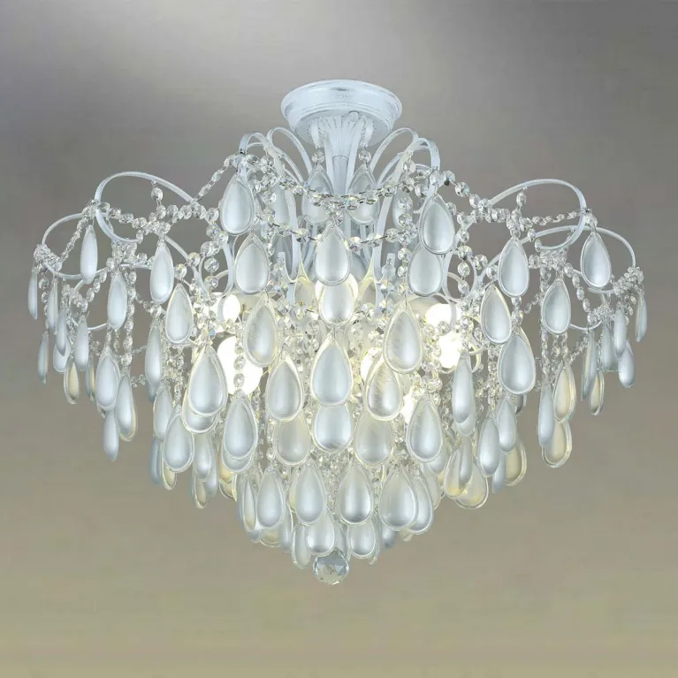 Преобладающий цвет люстры: Серебро, арматуры: Белый; материал изготовления арматуры: Металл, размеры, мм: / высота 600 / диаметр 750. Общая мощность – 400 Ватт, а максимальная площадь освещения до 22,2 м2. Основной тип ламп, предусмотренный производителем: Накаливания с цоколем E14. В зависимости от предпочтений можно использовать лампы теплового, холодного или нейтрального света, за исключением люстр с типом цоколя LED.