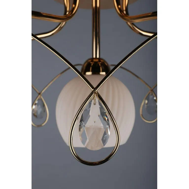Преобладающий цвет люстры: Белый, плафонов: Белый, арматуры: Золото; материал изготовления арматуры: Металл, размеры, мм: / высота 300 / диаметр 600. Общая мощность – 360 Ватт, а максимальная площадь освещения до 20 м2. Основной тип ламп, предусмотренный производителем: Накаливания с цоколем E14. В зависимости от предпочтений можно использовать лампы теплового, холодного или нейтрального света, за исключением люстр с типом цоколя LED.