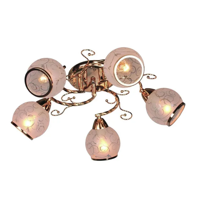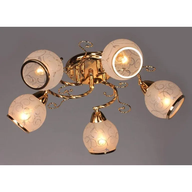 Преобладающий цвет люстры: Белый, плафонов: Белый, арматуры: Золото; материал изготовления арматуры: Металл, размеры, мм: / высота 170 / диаметр 500. Общая мощность – 300 Ватт, а максимальная площадь освещения до 16,7 м2. Основной тип ламп, предусмотренный производителем: Накаливания с цоколем E14. В зависимости от предпочтений можно использовать лампы теплового, холодного или нейтрального света, за исключением люстр с типом цоколя LED.