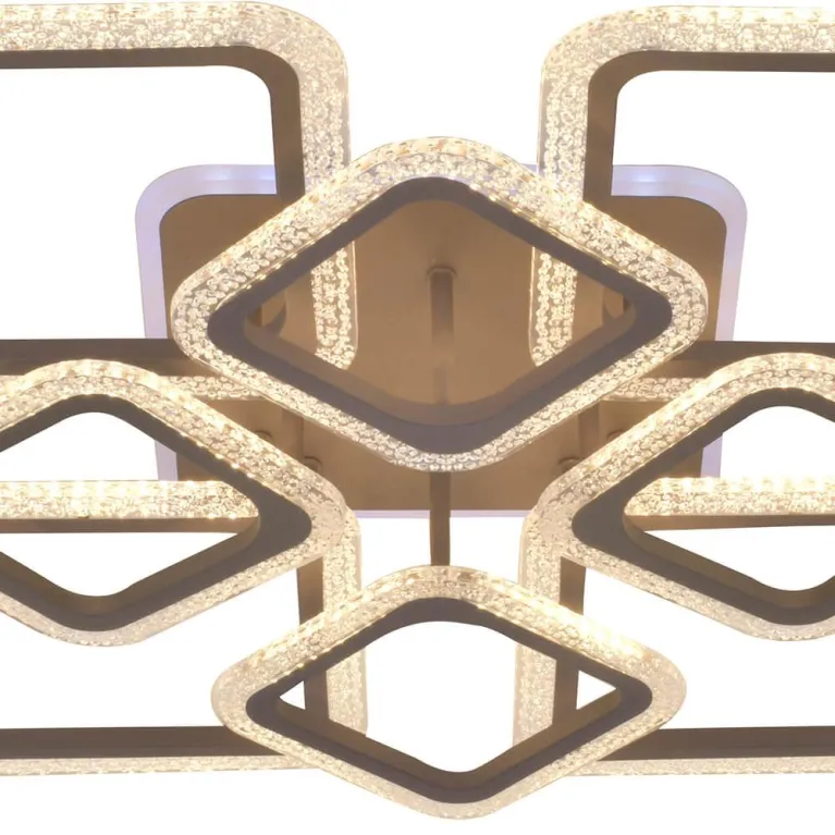 Преобладающий цвет люстры: Коричневый, плафонов: Коричневый, арматуры: Коричневый; материал изготовления арматуры: Металл, размеры, мм: длина 590 / ширина 590 / высота 125 Общая мощность – 1575 Ватт, а максимальная площадь освещения до 40 м2. Основной тип ламп, предусмотренный производителем: Светодиодная с цоколем LED. В зависимости от предпочтений можно использовать лампы теплового, холодного или нейтрального света, за исключением люстр с типом цоколя LED.