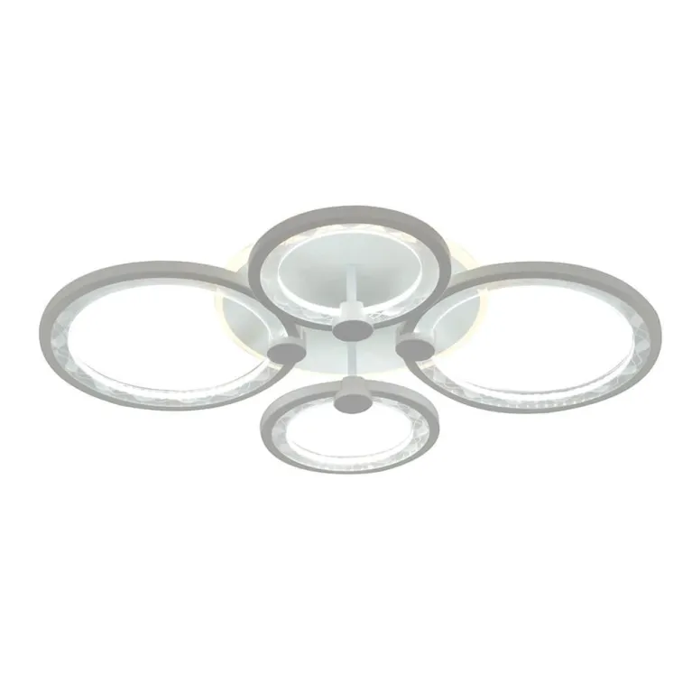 Преобладающий цвет люстры: Белый, плафонов: Белый, арматуры: Белый; материал изготовления арматуры: Металл, размеры, мм: длина 625 / ширина 485 / высота 100 Общая мощность – 525 Ватт, а максимальная площадь освещения до 25 м2. Основной тип ламп, предусмотренный производителем: Светодиодная с цоколем LED. В зависимости от предпочтений можно использовать лампы теплового, холодного или нейтрального света, за исключением люстр с типом цоколя LED.