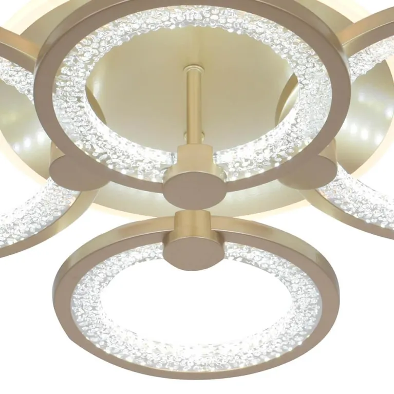 Преобладающий цвет люстры: Шампань, плафонов: Шампань, арматуры: Шампань; материал изготовления арматуры: Металл, размеры, мм: длина 630 / ширина 420 / высота 130 Общая мощность – 525 Ватт, а максимальная площадь освещения до 25 м2. Основной тип ламп, предусмотренный производителем: Светодиодная с цоколем LED. В зависимости от предпочтений можно использовать лампы теплового, холодного или нейтрального света, за исключением люстр с типом цоколя LED.