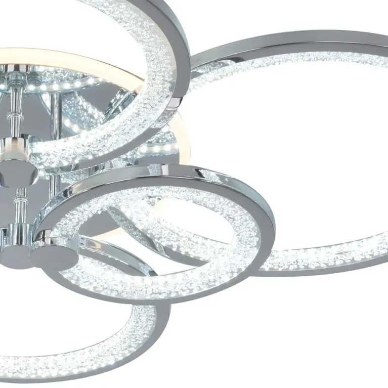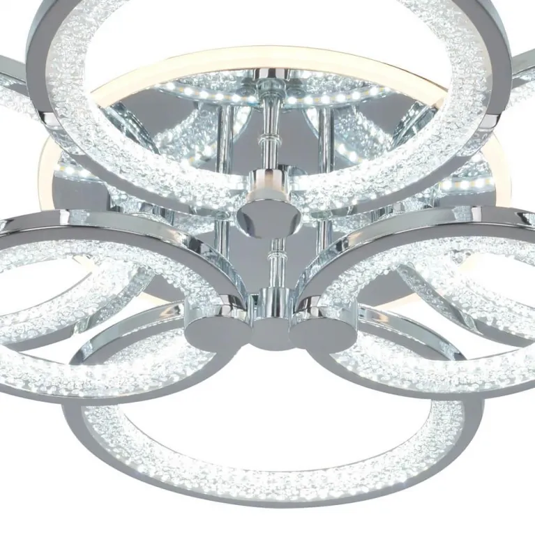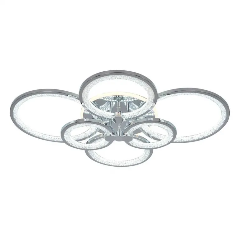 Преобладающий цвет люстры: Хром, плафонов: Хром, арматуры: Хром; материал изготовления арматуры: Металл, размеры, мм: длина 790 / ширина 610 / высота 130 Общая мощность – 1225 Ватт, а максимальная площадь освещения до 40 м2. Основной тип ламп, предусмотренный производителем: Светодиодная с цоколем LED. В зависимости от предпочтений можно использовать лампы теплового, холодного или нейтрального света, за исключением люстр с типом цоколя LED.