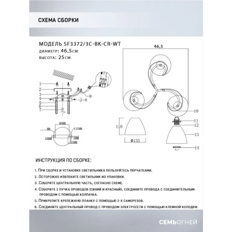 Преобладающий цвет плафонов: Белый, арматуры: Черный; материал изготовления арматуры: Металл, размеры, мм: / высота 250 / диаметр 465. Общая мощность – 180 Ватт, а максимальная площадь освещения до 9 м2. Основной тип ламп, предусмотренный производителем: Накаливания с цоколем E27. В зависимости от предпочтений можно использовать лампы теплового, холодного или нейтрального света, за исключением люстр с типом цоколя LED.