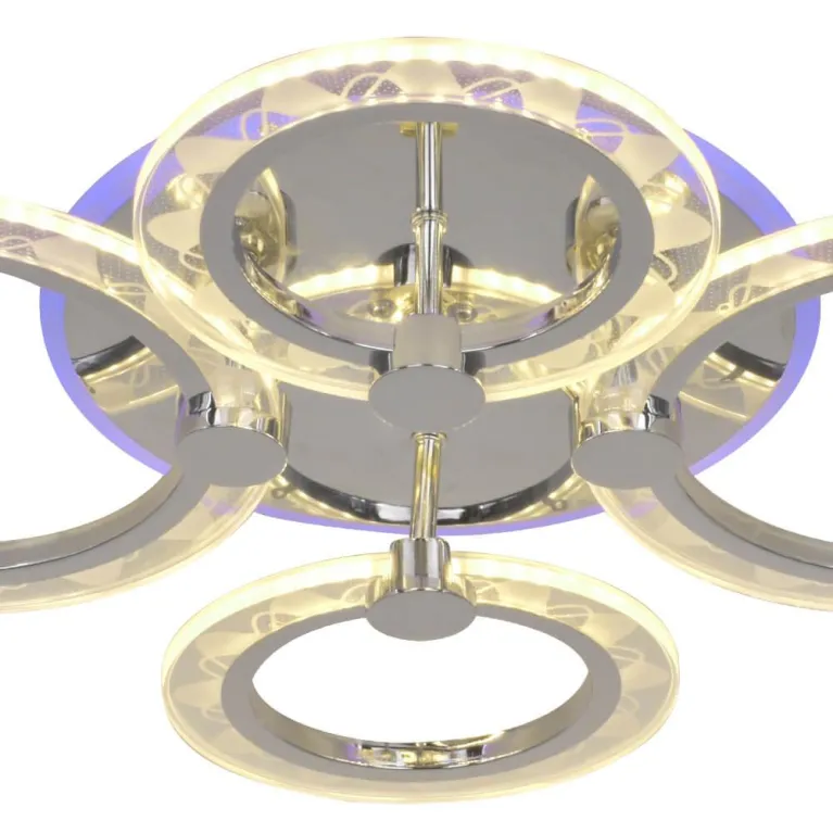 Преобладающий цвет люстры: Хром, плафонов: Хром, арматуры: Хром; материал изготовления арматуры: Металл, размеры, мм: длина 620 / ширина 490 / высота 100 Общая мощность – 325 Ватт, а максимальная площадь освещения до 16 м2. Основной тип ламп, предусмотренный производителем: Светодиодная с цоколем LED. В зависимости от предпочтений можно использовать лампы теплового, холодного или нейтрального света, за исключением люстр с типом цоколя LED.