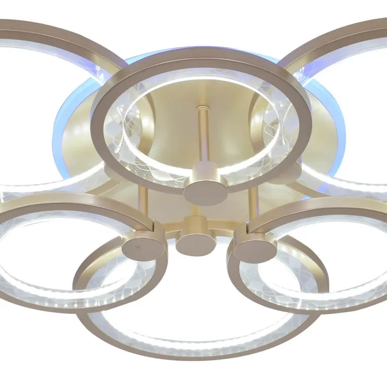 Преобладающий цвет люстры: Шампань, плафонов: Шампань, арматуры: Шампань; материал изготовления арматуры: Металл, размеры, мм: / высота 120 / диаметр 630. Общая мощность – 945 Ватт, а максимальная площадь освещения до 30 м2. Основной тип ламп, предусмотренный производителем: Светодиодная с цоколем LED. В зависимости от предпочтений можно использовать лампы теплового, холодного или нейтрального света, за исключением люстр с типом цоколя LED.