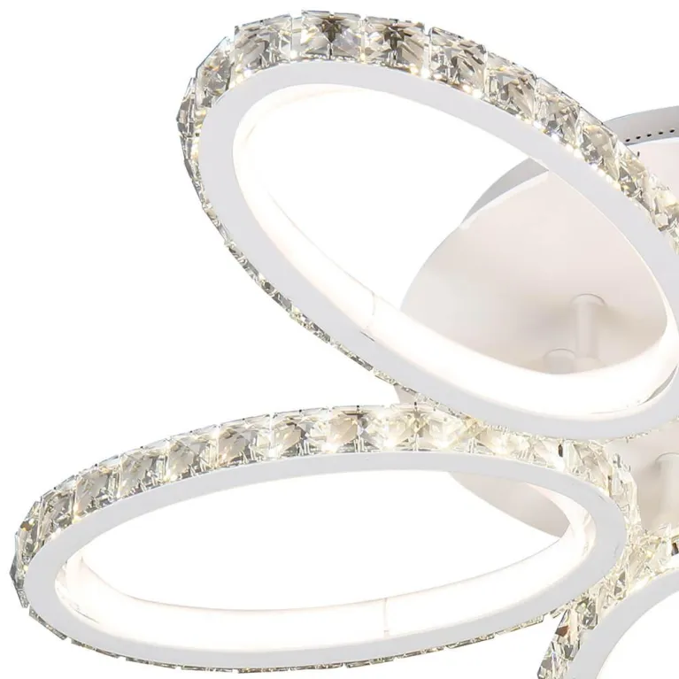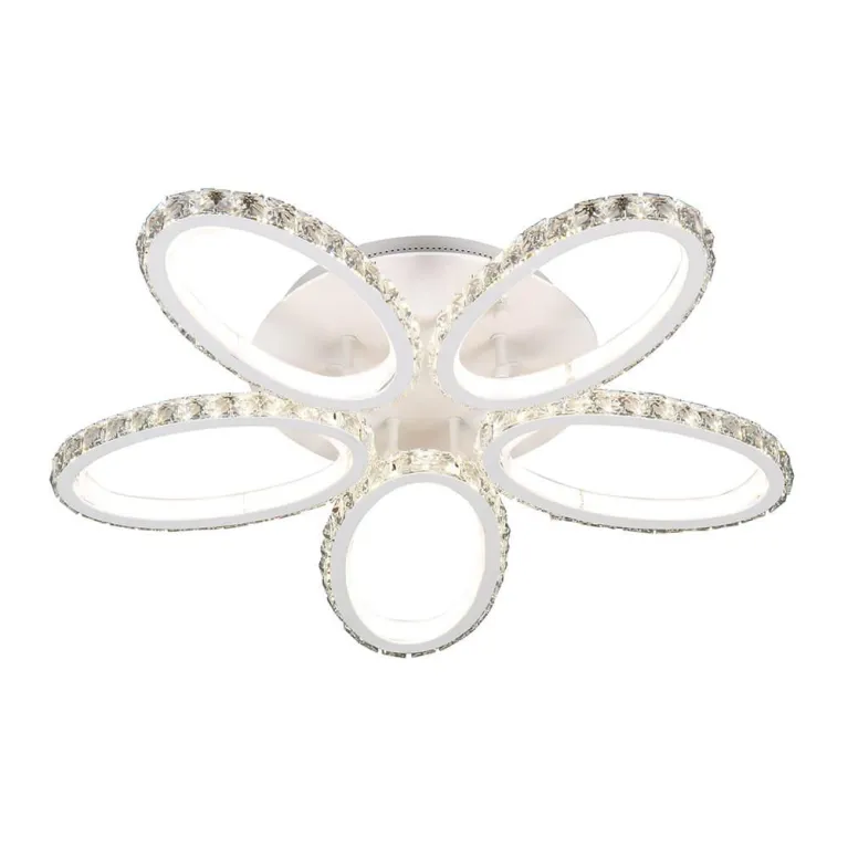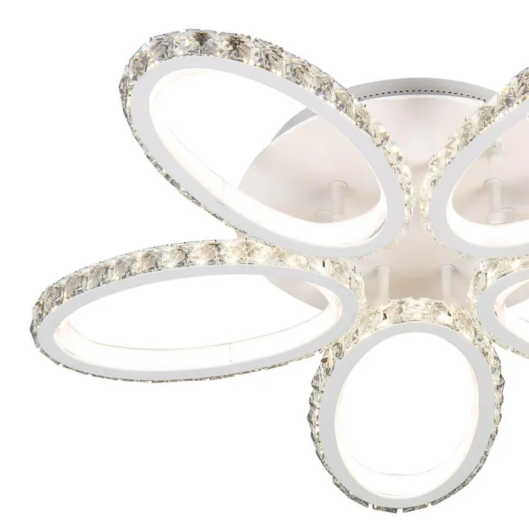 Преобладающий цвет люстры: Белый, плафонов: Белый, арматуры: Белый; материал изготовления арматуры: Металл, размеры, мм: / высота 100 / диаметр 610. Общая мощность – 115 Ватт, а максимальная площадь освещения до 77 м2. Основной тип ламп, предусмотренный производителем: Светодиодная с цоколем LED. В зависимости от предпочтений можно использовать лампы теплового, холодного или нейтрального света, за исключением люстр с типом цоколя LED.