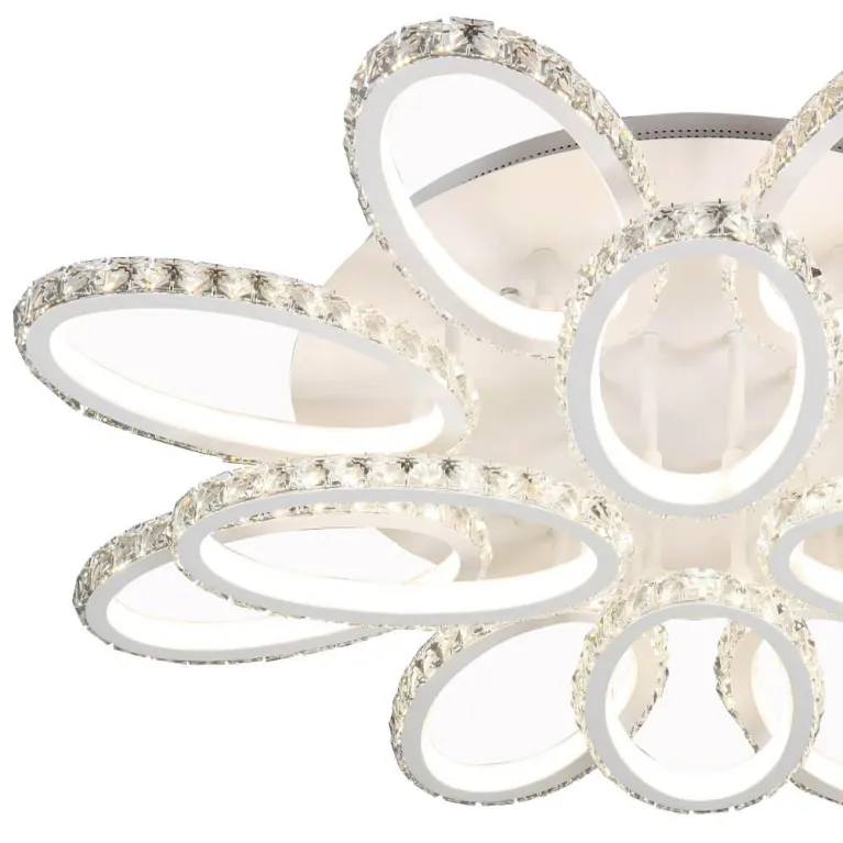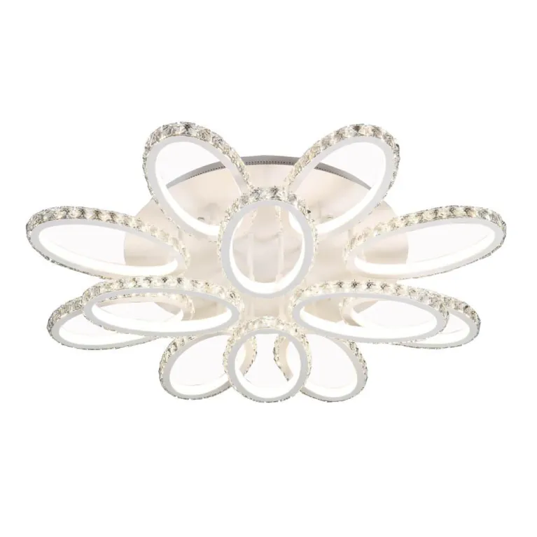 Преобладающий цвет люстры: Белый, плафонов: Белый, арматуры: Белый; материал изготовления арматуры: Металл, размеры, мм: / высота 160 / диаметр 800. Общая мощность – 276 Ватт, а максимальная площадь освещения до 184 м2. Основной тип ламп, предусмотренный производителем: Светодиодная с цоколем LED. В зависимости от предпочтений можно использовать лампы теплового, холодного или нейтрального света, за исключением люстр с типом цоколя LED.
