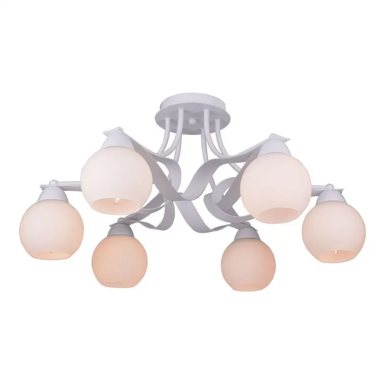 Корпус люстры выполнен из прочного металла с белым матовым покрытием, который прекрасно гармонирует с различными стилями интерьера. Плафоны из белого стекла имеют изящную форму и придают светильнику лёгкость и элегантность.