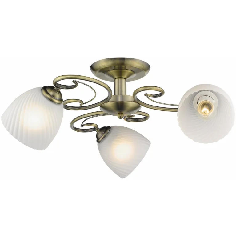Преобладающий цвет плафонов: Белый, арматуры: Бронза; материал изготовления арматуры: Металл, размеры, мм: / высота 240 / диаметр 620. Общая мощность – 180 Ватт, а максимальная площадь освещения до 9 м2. Основной тип ламп, предусмотренный производителем: Накаливания с цоколем E27. В зависимости от предпочтений можно использовать лампы теплового, холодного или нейтрального света, за исключением люстр с типом цоколя LED.