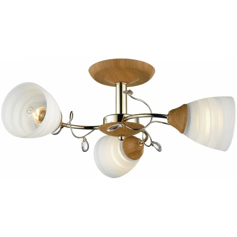 Преобладающий цвет плафонов: Белый, арматуры: Коричневый; материал изготовления арматуры: Металл, размеры, мм: / высота 190 / диаметр 260. Общая мощность – 180 Ватт, а максимальная площадь освещения до 9 м2. Основной тип ламп, предусмотренный производителем: Накаливания с цоколем E27. В зависимости от предпочтений можно использовать лампы теплового, холодного или нейтрального света, за исключением люстр с типом цоколя LED.