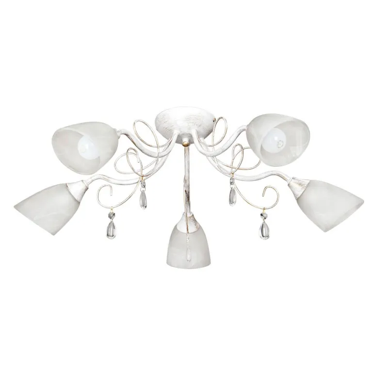 Преобладающий цвет люстры: Белый, плафонов: Белый, арматуры: Белый; материал изготовления арматуры: Металл, размеры, мм: / высота 220 / диаметр 650. Общая мощность – 300 Ватт, а максимальная площадь освещения до 15 м2. Основной тип ламп, предусмотренный производителем: Накаливания с цоколем E14. В зависимости от предпочтений можно использовать лампы теплового, холодного или нейтрального света, за исключением люстр с типом цоколя LED.