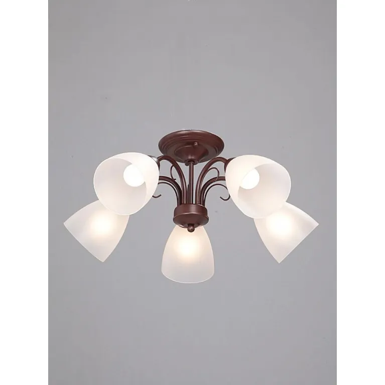 Люстра оснащена пятью источниками света с цоколем E27, что позволяет использовать лампы различных типов и мощностей, включая энергосберегающие и светодиодные. Такое количество ламп обеспечивает яркое и равномерное освещение пространства площадью до 20 кв. м, создавая комфортную обстановку в доме.