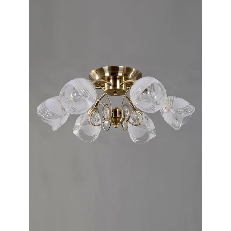 Преобладающий цвет люстры: Бронза, плафонов: Прозрачный, арматуры: Бронза; материал изготовления арматуры: Металл, размеры, мм: / высота 200 / диаметр 550. Общая мощность – 360 Ватт, а максимальная площадь освещения до 18 м2. Основной тип ламп, предусмотренный производителем: Накаливания с цоколем E14. В зависимости от предпочтений можно использовать лампы теплового, холодного или нейтрального света, за исключением люстр с типом цоколя LED.