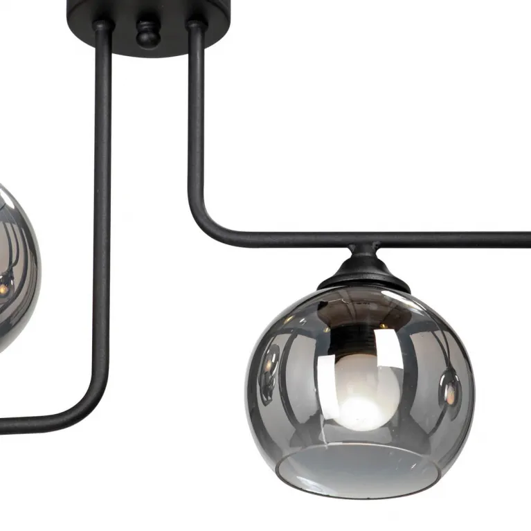 Корпус люстры изготовлен из прочного металла с черным матовым покрытием, который прекрасно гармонирует с различными материалами и оттенками мебели. Плафоны из белого матового стекла обеспечивают мягкое и равномерное рассеивание света, создавая комфортное освещение в помещении.