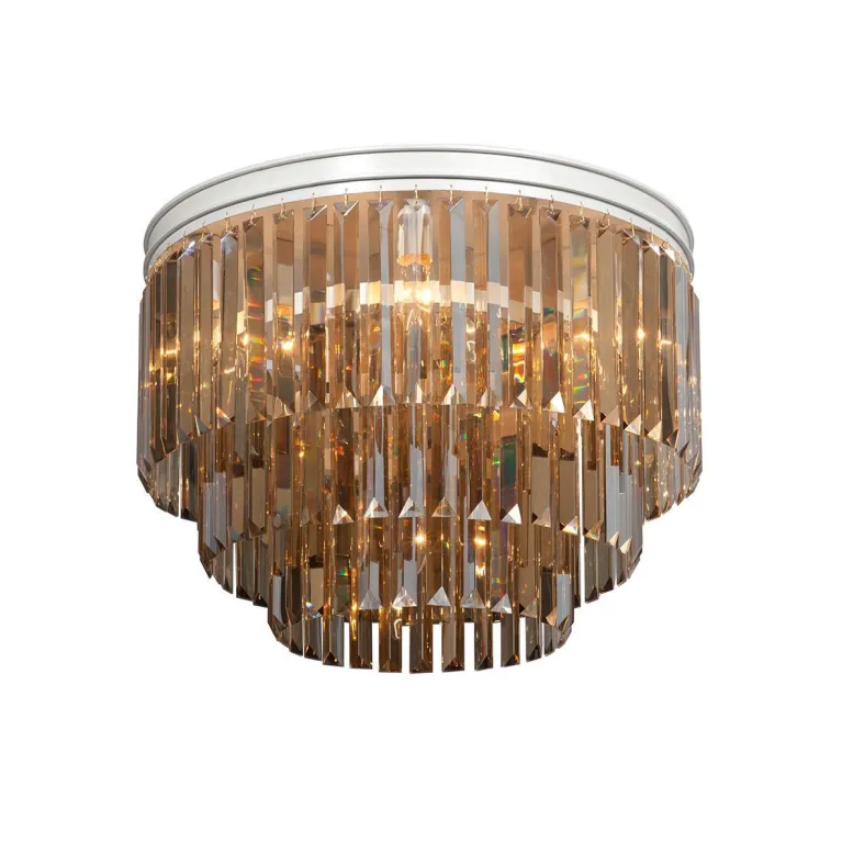 Преобладающий цвет люстры: Янтарный, плафонов: Янтарный, арматуры: Белый; материал изготовления арматуры: Металл, размеры, мм: / высота 380 / диаметр 510. Общая мощность – 600 Ватт, а максимальная площадь освещения до 30 м2. Основной тип ламп, предусмотренный производителем: Накаливания с цоколем E14. В зависимости от предпочтений можно использовать лампы теплового, холодного или нейтрального света, за исключением люстр с типом цоколя LED.