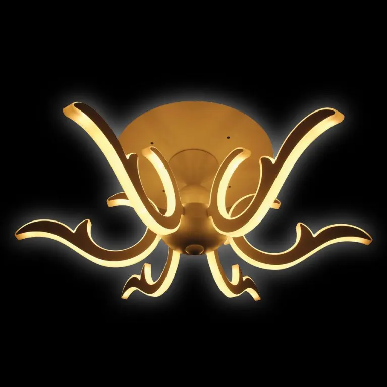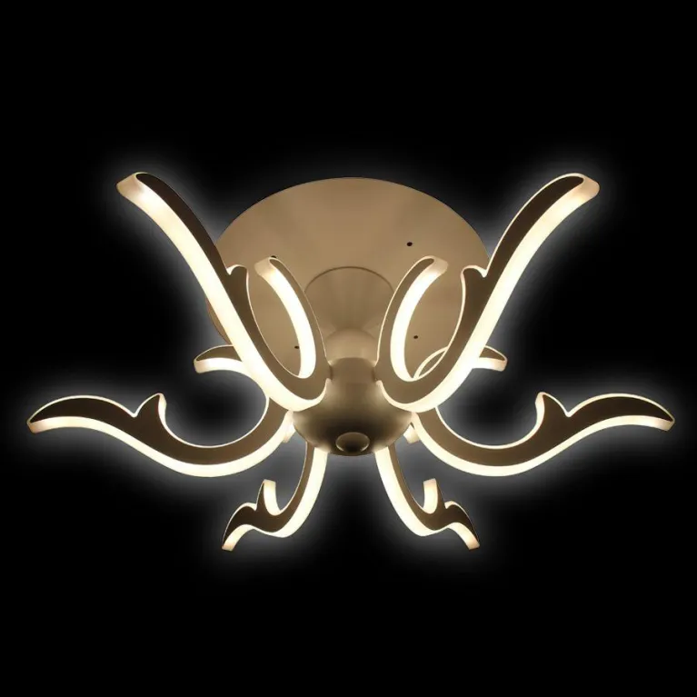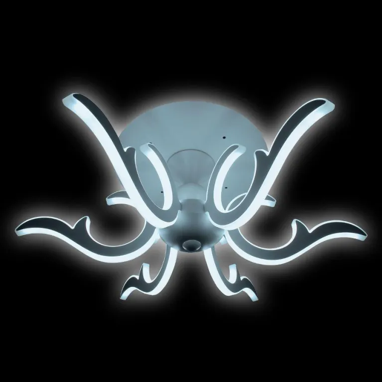 Преобладающий цвет люстры: Белый, плафонов: Белый, арматуры: Белый; материал изготовления арматуры: Пластик, размеры, мм: длина 720 / ширина 620 / высота 280 Общая мощность – 200 Ватт. Основной тип ламп, предусмотренный производителем: Светодиодная с цоколем LED. В зависимости от предпочтений можно использовать лампы теплового, холодного или нейтрального света, за исключением люстр с типом цоколя LED.