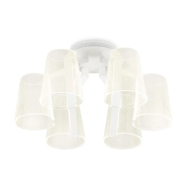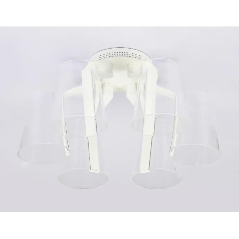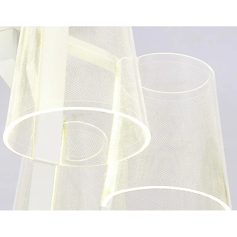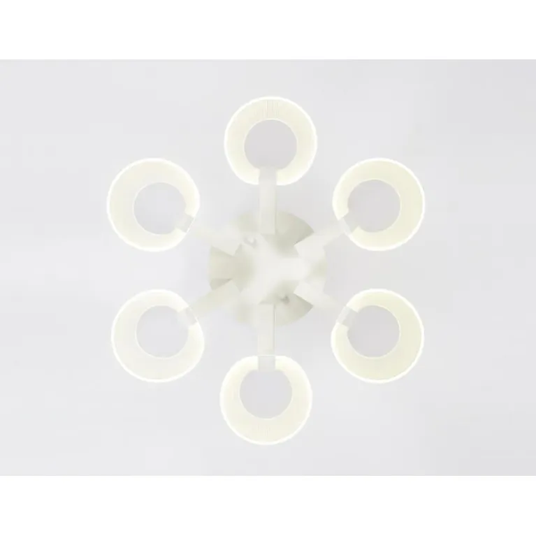 Преобладающий цвет люстры: Белый, плафонов: Прозрачный, арматуры: Белый; материал изготовления арматуры: Металл, размеры, мм: / высота 290 / диаметр 600. Общая мощность – 96 Ватт, а максимальная площадь освещения до 20 м2. Основной тип ламп, предусмотренный производителем: Светодиодная с цоколем LED. В зависимости от предпочтений можно использовать лампы теплового, холодного или нейтрального света, за исключением люстр с типом цоколя LED.