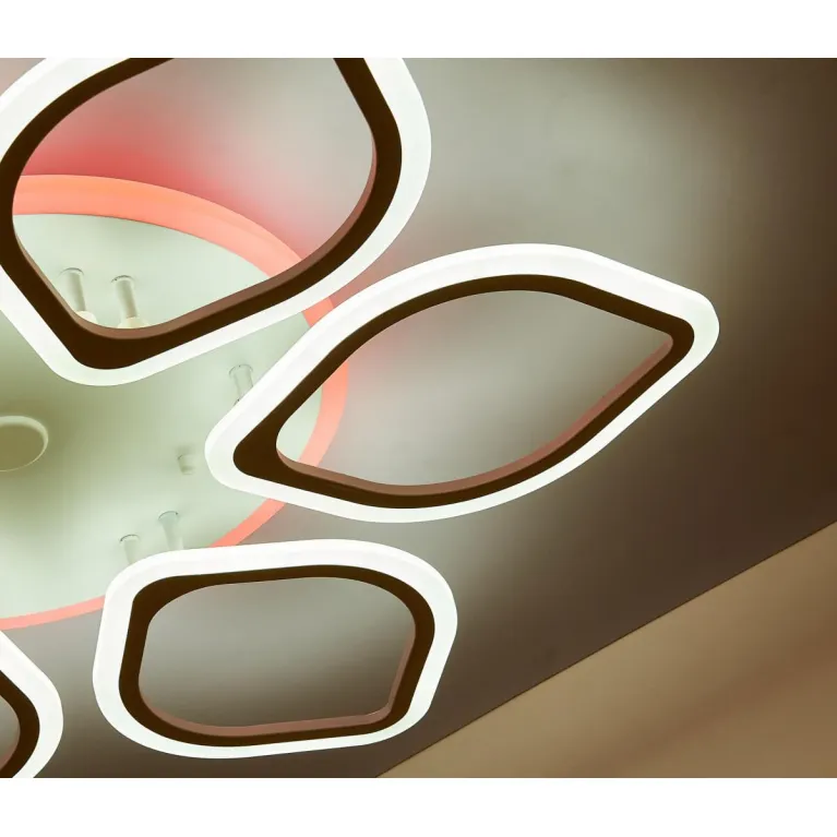 Корпус люстры выполнен из высококачественного металла и пластика, отличающихся долговечностью и стойкостью к внешним воздействиям. Дизайн в современном стиле с лаконичными линиями и отсутствием излишних деталей придает изделию элегантный и универсальный вид.