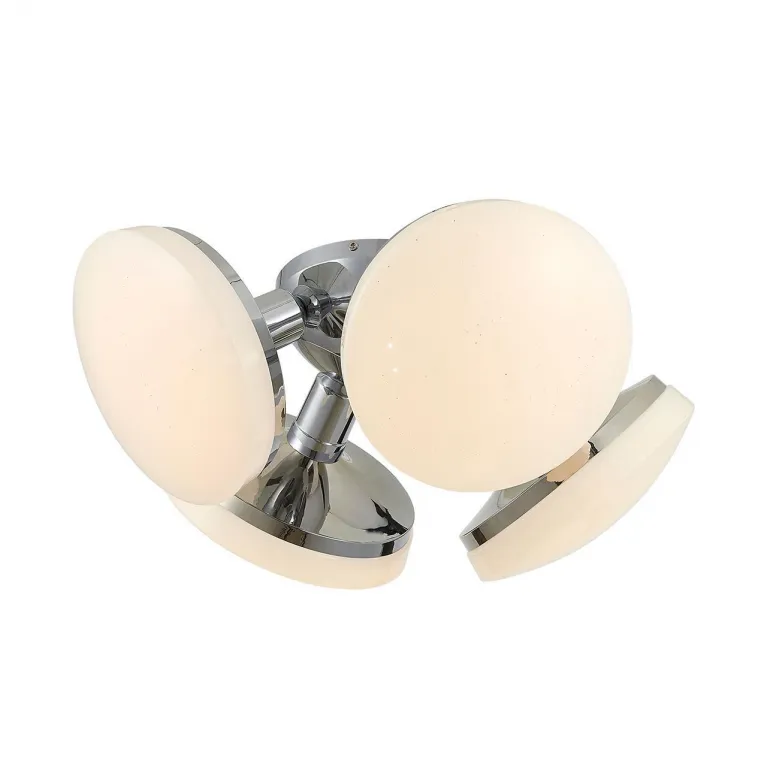 Преобладающий цвет люстры: Белый, плафонов: Белый, арматуры: Хром; материал изготовления арматуры: Полимер, размеры, мм: / высота 200 / диаметр 500. Общая мощность – 48 Ватт, а максимальная площадь освещения до 21 м2. Основной тип ламп, предусмотренный производителем: Светодиодная с цоколем E27. В зависимости от предпочтений можно использовать лампы теплового, холодного или нейтрального света, за исключением люстр с типом цоколя LED.
