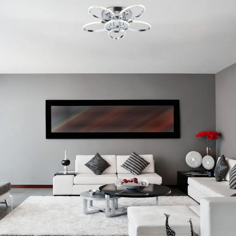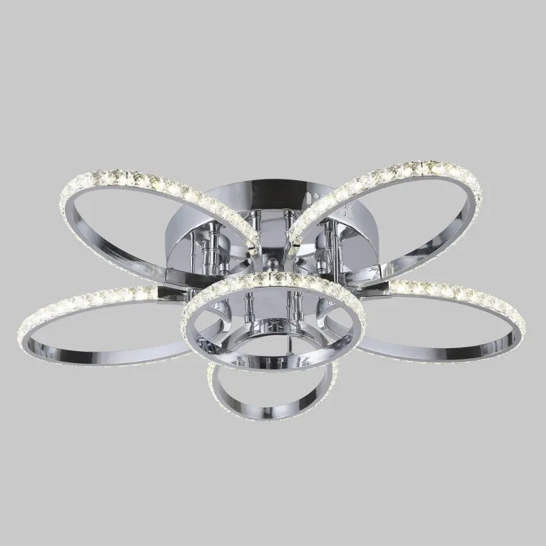 Преобладающий цвет люстры: Хром, плафонов: Хром, арматуры: Хром; материал изготовления арматуры: Металл, размеры, мм: / высота 170 / диаметр 620. Общая мощность – 45 Ватт, а максимальная площадь освещения до 21 м2. Основной тип ламп, предусмотренный производителем: Светодиодная с цоколем LED. В зависимости от предпочтений можно использовать лампы теплового, холодного или нейтрального света, за исключением люстр с типом цоколя LED.