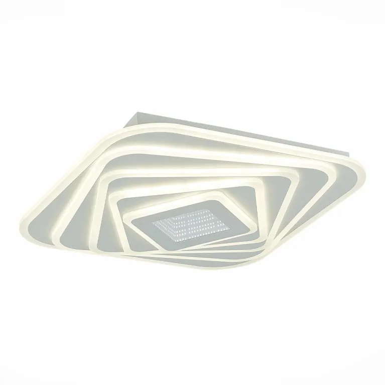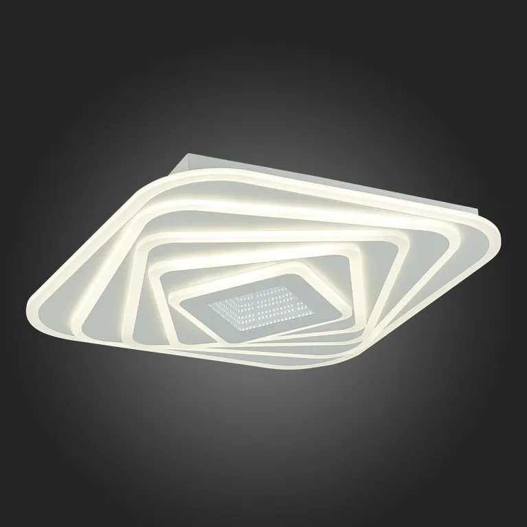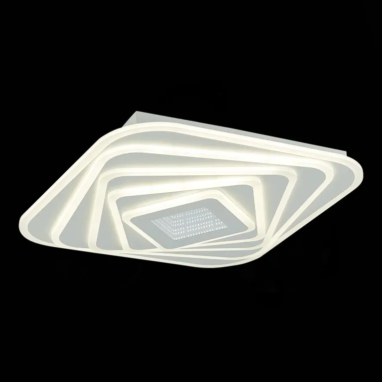 Преобладающий цвет люстры: Белый, плафонов: Белый, арматуры: Белый; материал изготовления арматуры: Металл, размеры, мм: длина 500 / ширина 500 / высота 85 Общая мощность – 220 Ватт, а максимальная площадь освещения до 34 м2. Основной тип ламп, предусмотренный производителем: Светодиодная с цоколем LED. В зависимости от предпочтений можно использовать лампы теплового, холодного или нейтрального света, за исключением люстр с типом цоколя LED.