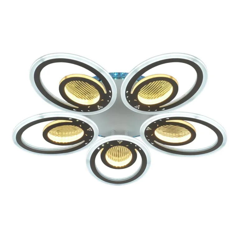 Преобладающий цвет люстры: Белый, плафонов: Белый, арматуры: Белый; материал изготовления арматуры: Металл, размеры, мм: / высота 85 / диаметр 680. Общая мощность – 160 Ватт. Основной тип ламп, предусмотренный производителем: Светодиодная с цоколем LED. В зависимости от предпочтений можно использовать лампы теплового, холодного или нейтрального света, за исключением люстр с типом цоколя LED.