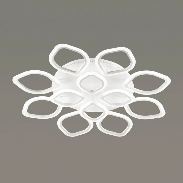Преобладающий цвет люстры: Белый, плафонов: Белый, арматуры: Белый; материал изготовления арматуры: Металл, размеры, мм: / высота 120 / диаметр 930. Общая мощность – 174 Ватт. Основной тип ламп, предусмотренный производителем: Светодиодная с цоколем LED. В зависимости от предпочтений можно использовать лампы теплового, холодного или нейтрального света, за исключением люстр с типом цоколя LED.