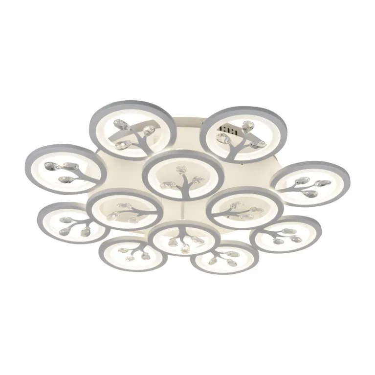 Преобладающий цвет люстры: Белый, плафонов: Белый, арматуры: Белый; материал изготовления арматуры: Металл, размеры, мм: / высота 130 / диаметр 810. Общая мощность – 264 Ватт, а максимальная площадь освещения до 22 м2. Основной тип ламп, предусмотренный производителем: Светодиодная с цоколем LED. В зависимости от предпочтений можно использовать лампы теплового, холодного или нейтрального света, за исключением люстр с типом цоколя LED.